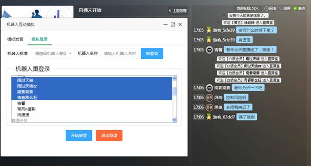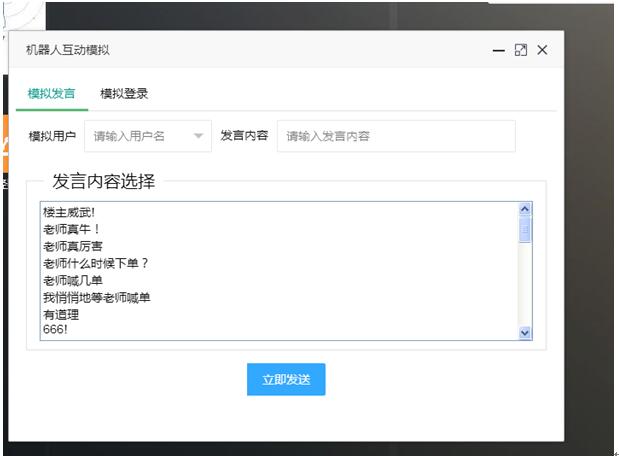 現(xiàn)在可以選擇任意一個(gè)機(jī)器人來進(jìn)行發(fā)言或者模擬登錄等動(dòng)作,效果如下圖3-6所示: