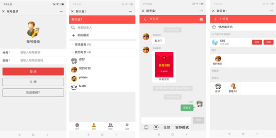 完善的聯系人管理功能、互動功能、群聊功能、紅包功能等。互動更隱蔽,數據更安全。