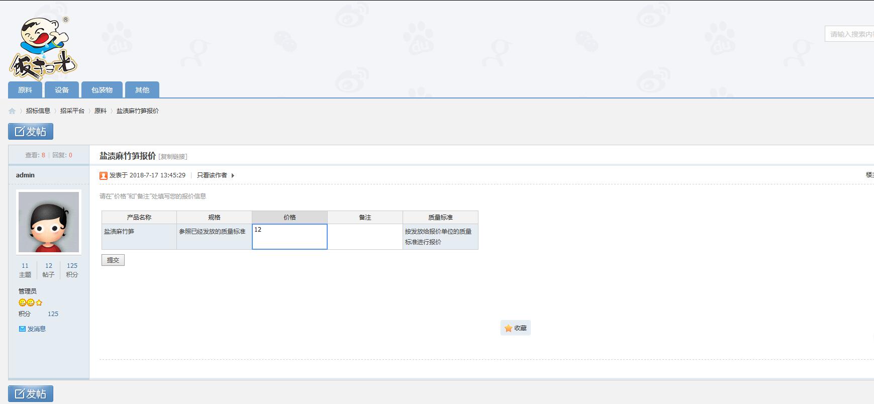 1、在管理員發(fā)布的報價表格上直接在線編輯填入價格,完成報價操作
