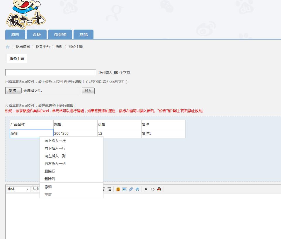 二、用戶(供貨商)針對管理員(經(jīng)銷商)發(fā)布的報價表格進(jìn)行報價