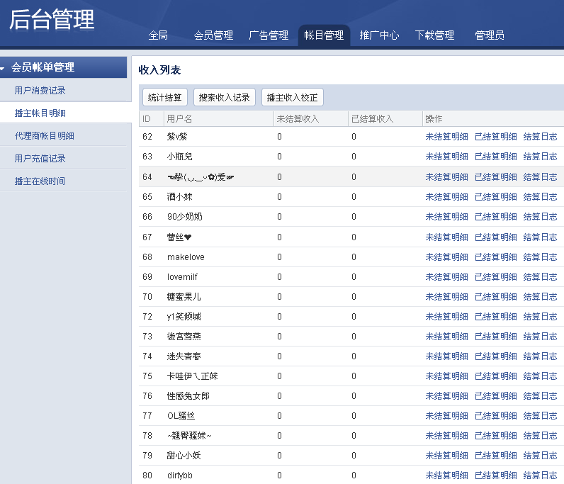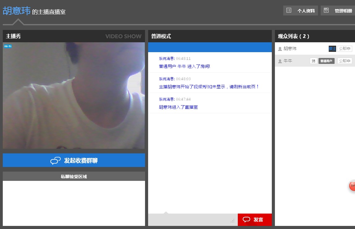公司開發的在線在線實時視頻直播的聊天室,直接通過瀏覽器即可實現視頻的實時傳輸。系統為主播提供了免費群聊,收費群聊,私聊等功能,播主可以通過跟網友的互動產生收益;系統還具備普通聊天室的基礎功能,可以實現網友之間,網友與播主的聊天互動,并且植入了多個道具贈送功能。系統后臺功能強大而豐富,具備了多種的管理模塊,功能成功而穩定,可直接部署商運。