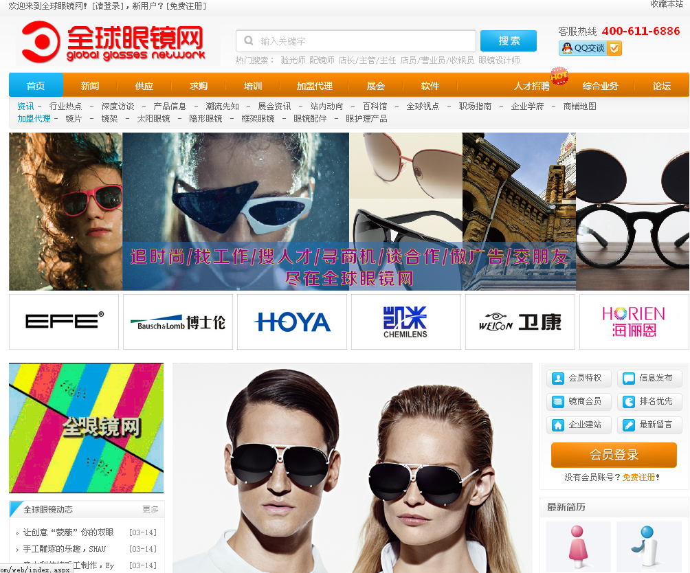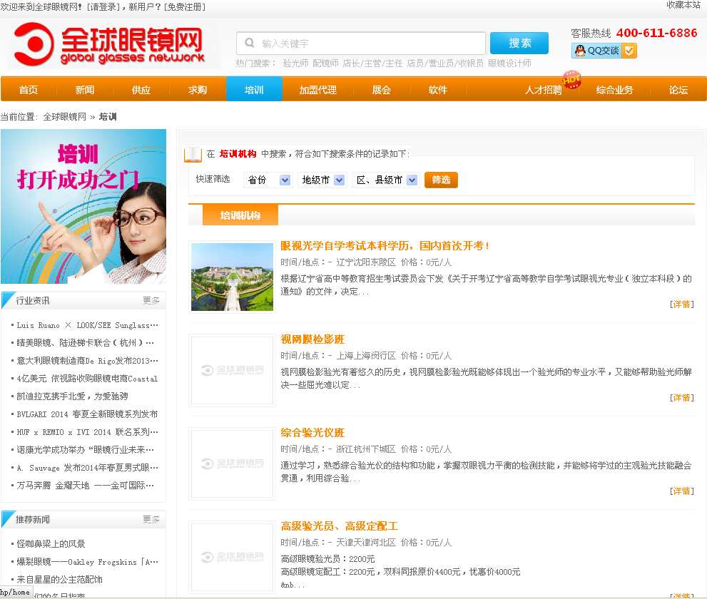 為眼鏡行業開發定制的門戶平臺,由行業資訊、人才招聘、培訓管理、加盟代理、在線定購等功能組成,為從業者搭建互相學習、經驗交流、信息共享、商業合作的信息化網絡平臺,從而改變眼鏡行業的交易方式,提升物流運輸管理效率,將方便、快捷、完善的服務整合到平臺當中。