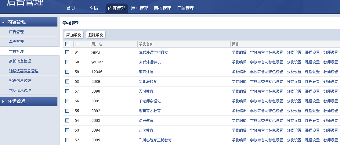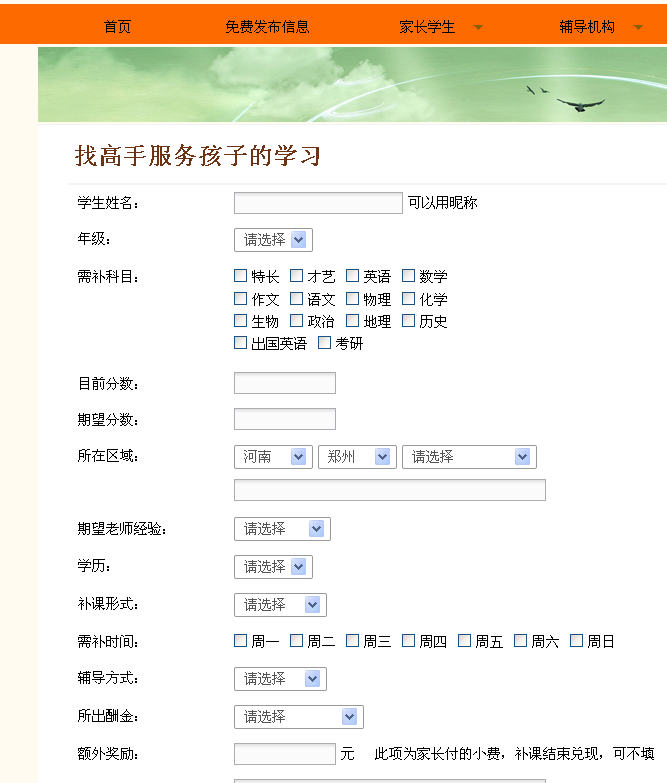一個教育培訓信息聚合網站,供學生,家長,輔導機構,輔導教師,求職者檢索信息的服務平臺。