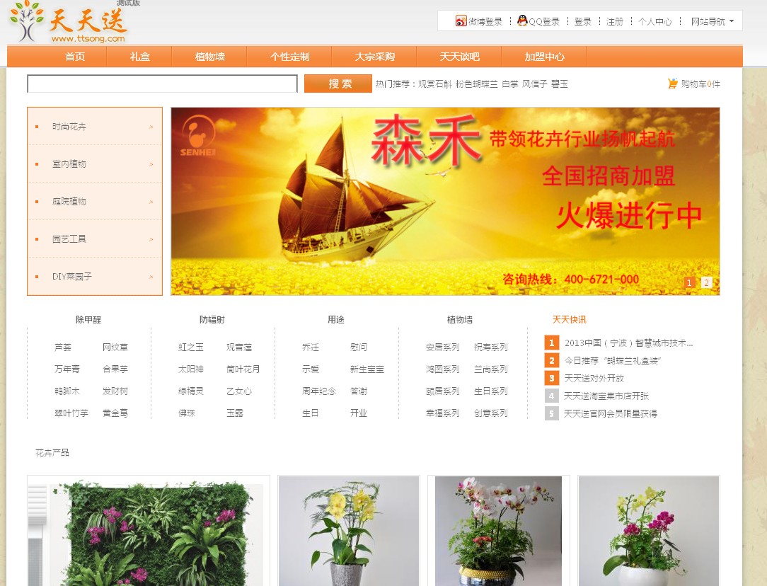 基于ECSHOP的二次開發,對系統進行了較大的改動,形成了一套適合做花卉銷售的網店系統,系統集成了新浪微博和騰訊微博帳號的單點登錄功能,以及在線個性定禮盒定制功能。